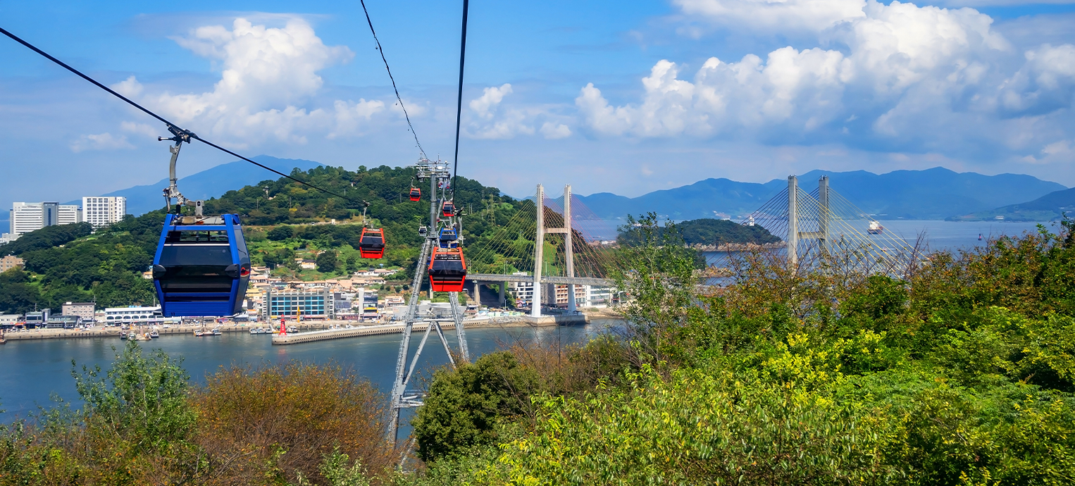 乘坐【丽水海上缆车(单程)】从空中俯瞰丽水海岸线与群岛。