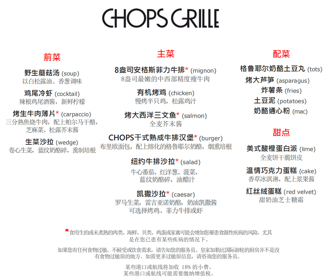 儿童菜单产品与标准菜单产品有所差异,以游轮上实际运营情况为准。如需品尝完整菜单,请选择标准菜单产品。