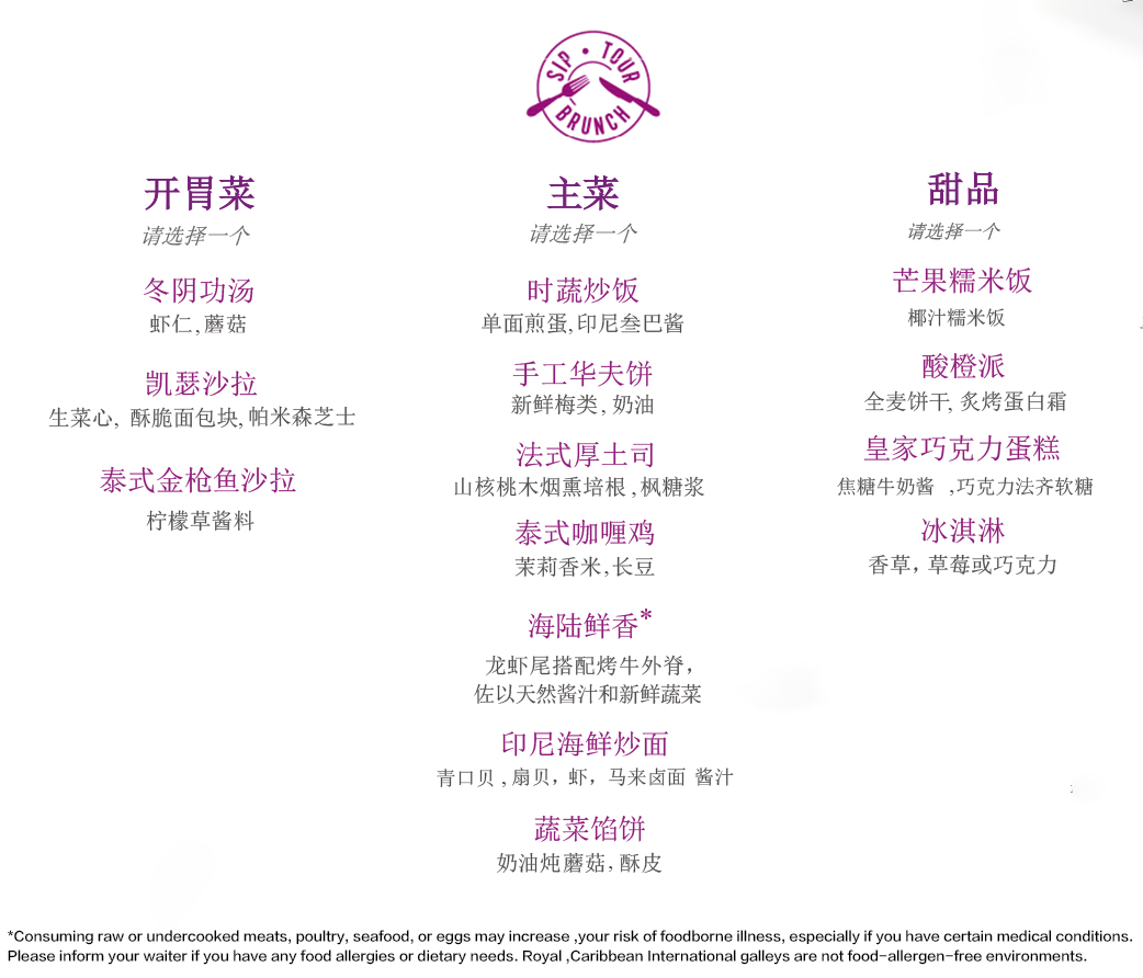 皇家行前订的产品价格和优惠仅适用于行前订;乘客于登船后进行的预订,以游轮上的实际售价为准。
